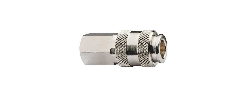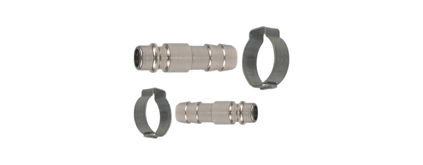 Raccord automatique à bague avec système d’accrochage à billes en inox. Connexion et déconnexion rapide par bague coulissante.