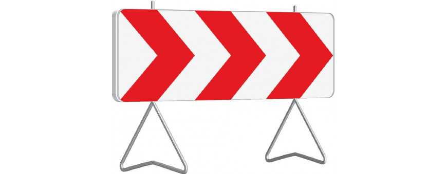 Panneau de signalisation des barrages K2 en acier galvanisé monobloc à double bord Certifié NF sur pied.