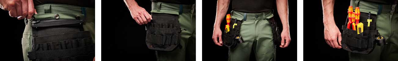Le design ergonomique de cette poche est conçu pour un confort optimal lors du port. Les coutures et les matériaux sont choisis pour éviter les points de pression et les irritations, même après une journée entière de travail. La légèreté du polyamide, combinée à la robustesse du tissu, permet de transporter vos outils sans alourdir inutilement votre équipement.